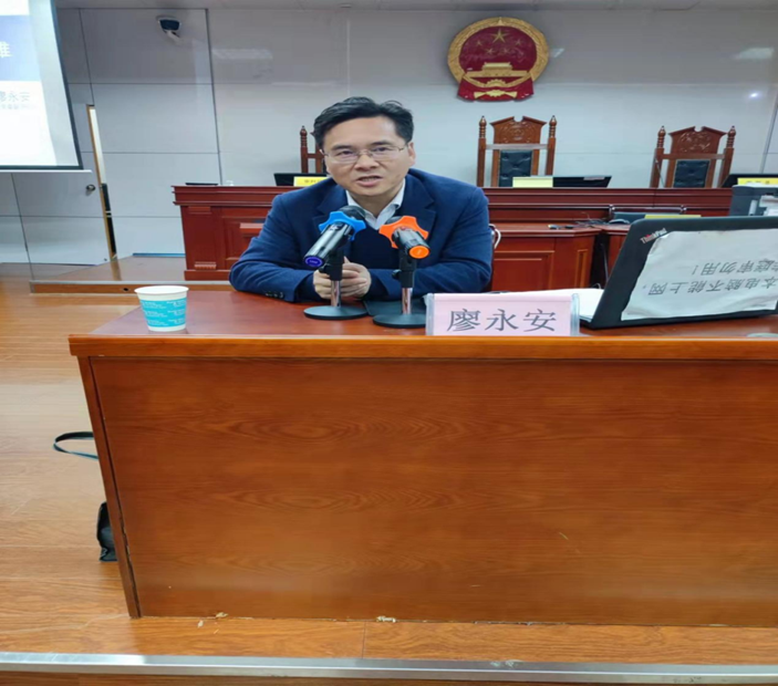 12月15日下午4时,公司在八栋模拟法庭举办了南湖法治论坛第十三期的学术讲座。湘潭大学党委副书记、教授、博士生导师廖永安受邀主讲本论坛,beats365副董事长汤小红、政beats365经理周四丁、政公司党委书记喻义东等公司老师,部分法学专业员工参加了本次讲座。