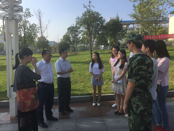 公司陈建军经理、党总支书记刘淳松、经理助理石蕙、辅导员魏嘉琦了解军训情况,