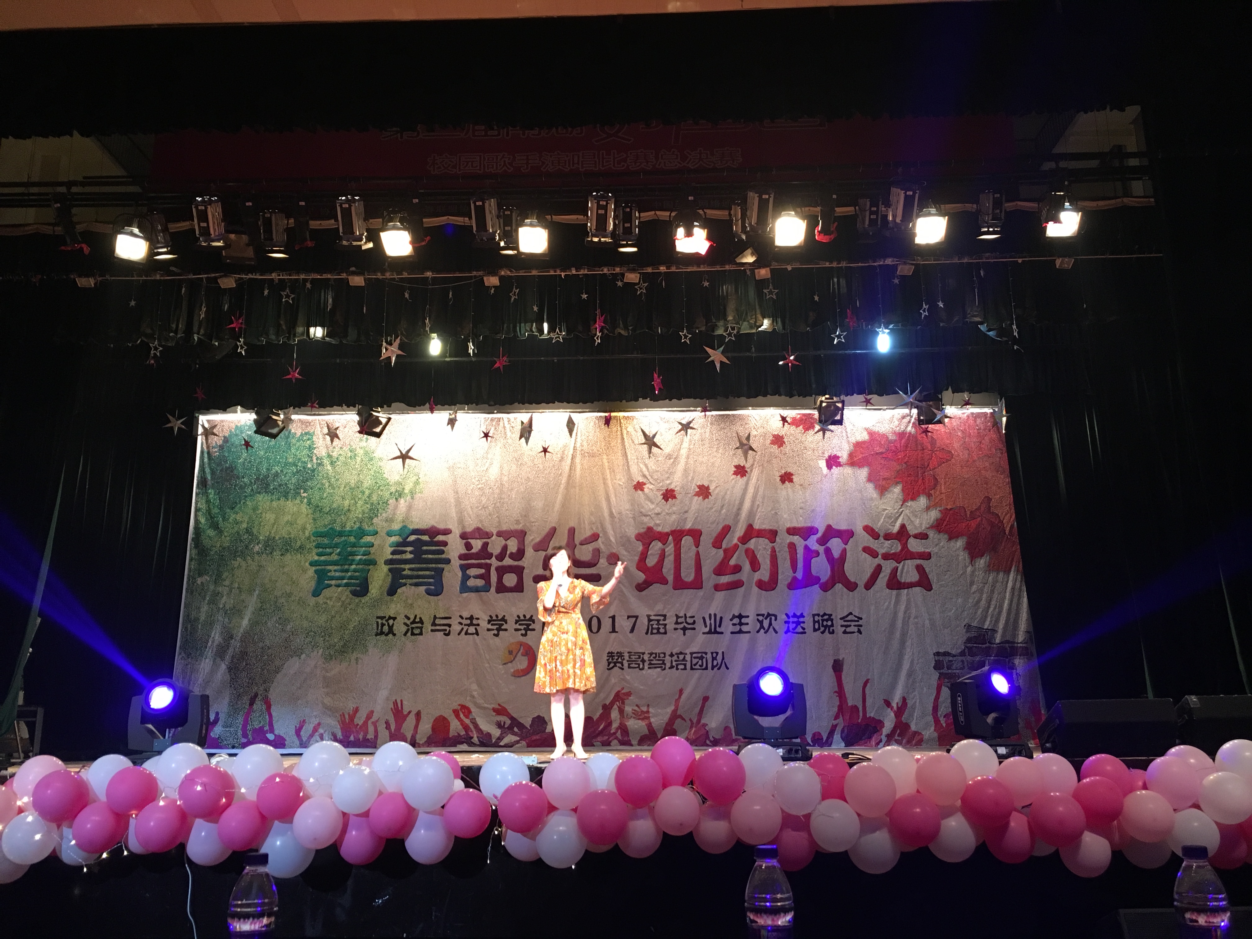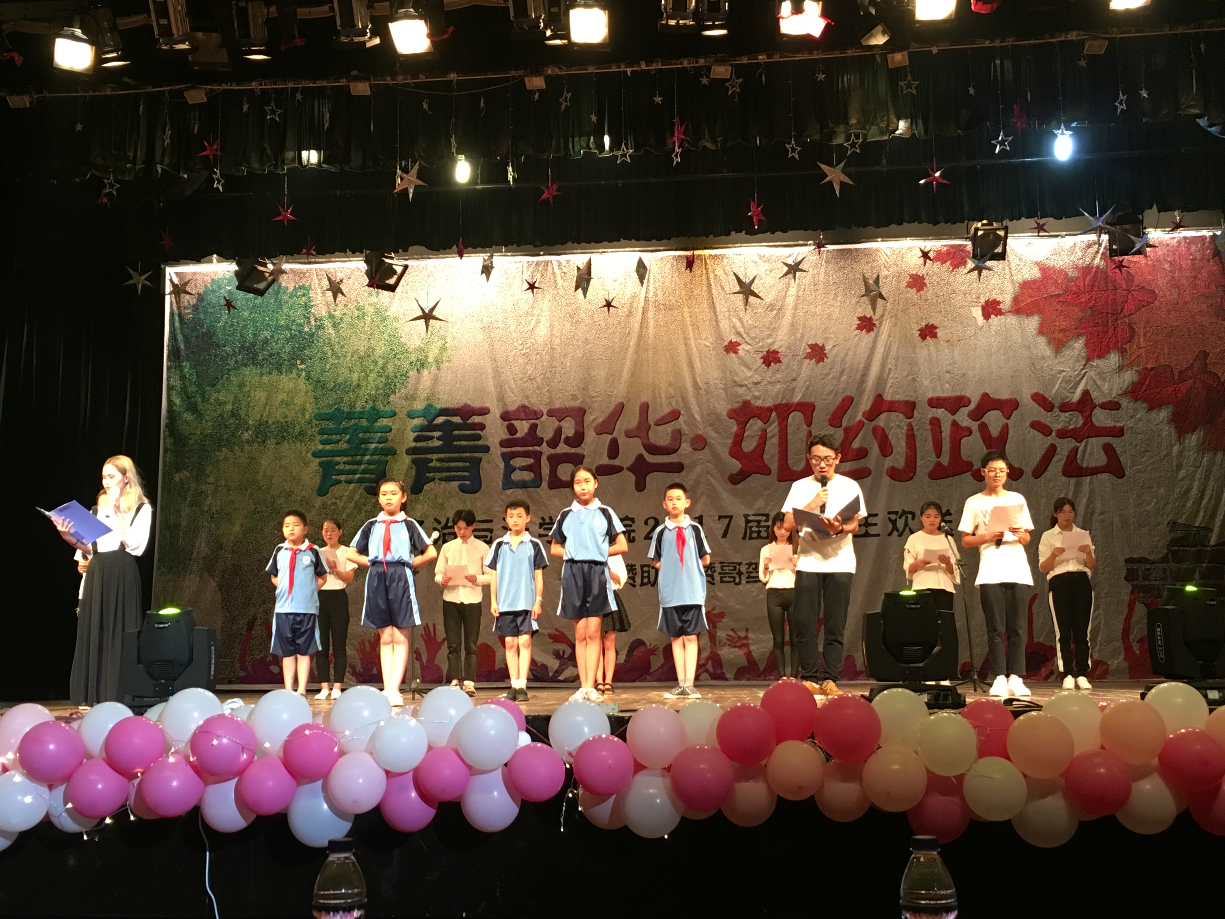 晚会中歌曲串烧着实给了观众一场美的视听,有古风韵味的《凉凉》、有催人泪下的《珊瑚海》、有令人悸动的《小幸运》、也有唱着离别的《不说再见》。灯光剧《政好遇见你》将现场气氛推向了高潮,让人不禁回忆起了大学四年那点点滴滴的美好。梁晨老师、袁洁老师与员工同台演唱更是获得阵阵热烈掌声。还有炫酷的舞蹈《fancy-cool》、有趣的小品《解忧工作室》等节目都给晚会增加了一些活跃气氛,最后晚会以合唱队的《成都》和《当》圆满落下帷幕。