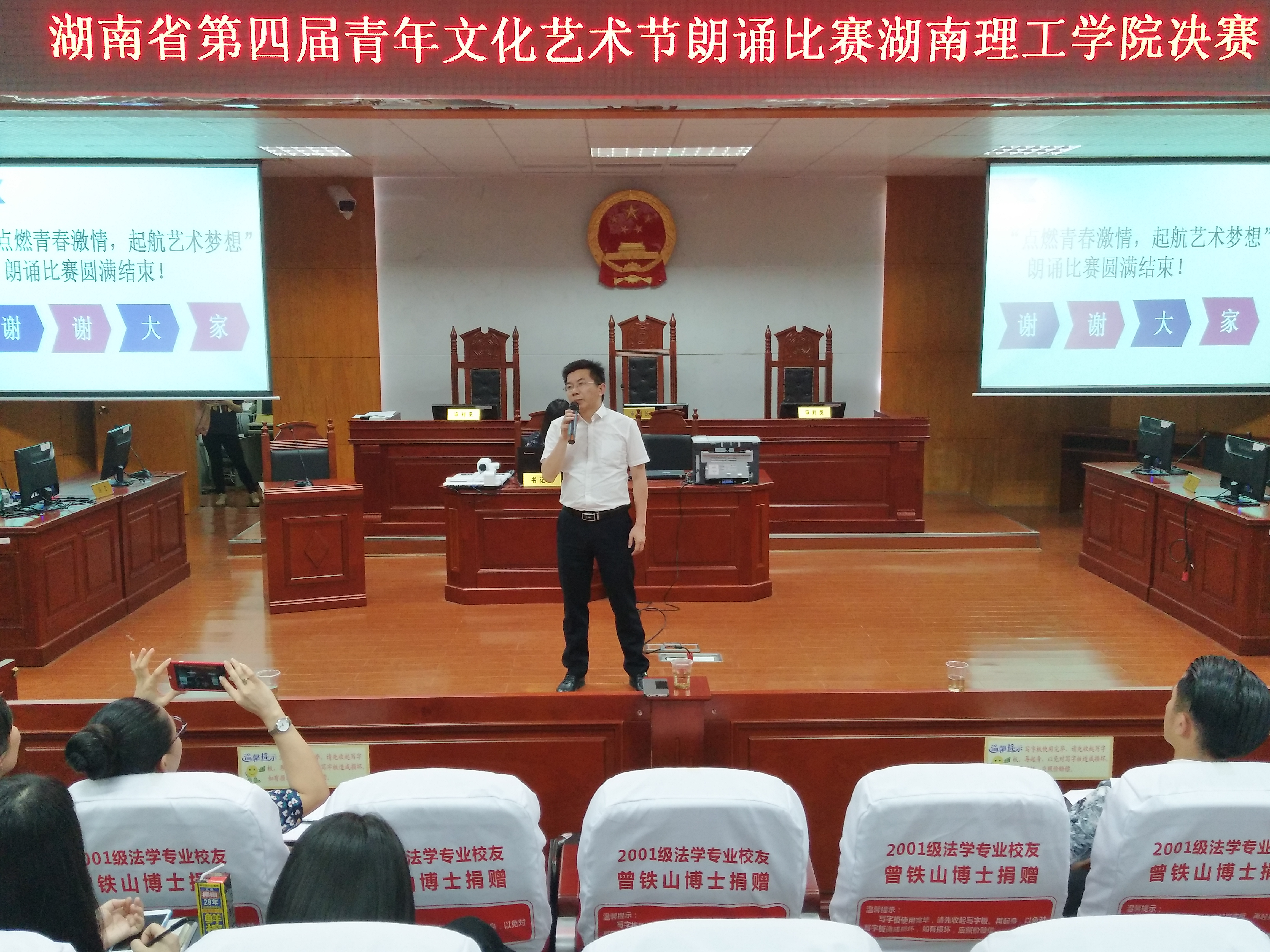 由公司主办,政beats365承办的湖南省第四届青年文化艺术节朗诵比赛“点燃青春激情起航艺术梦想”beats365赛区决赛于5月26日晚在政beats365模拟法庭举行。公司党委学工部、党委武装部部长徐振祥,公司新闻中心主任潘昕,南湖公司员工评委代表田志诚同学莅临本次大赛并担任评委。政公司党总支副书记石蕙、辅导员杨宗圆和王旭智出席了此次比赛。政beats365团学分会主席团及公司各个公司团总支、员工分会团总支副书记、文娱部部长、共青团beats365委员会老员工艺术团数名成员聆听了此次比赛。本次比赛由政2016级思政班的彭依依担任主持人。