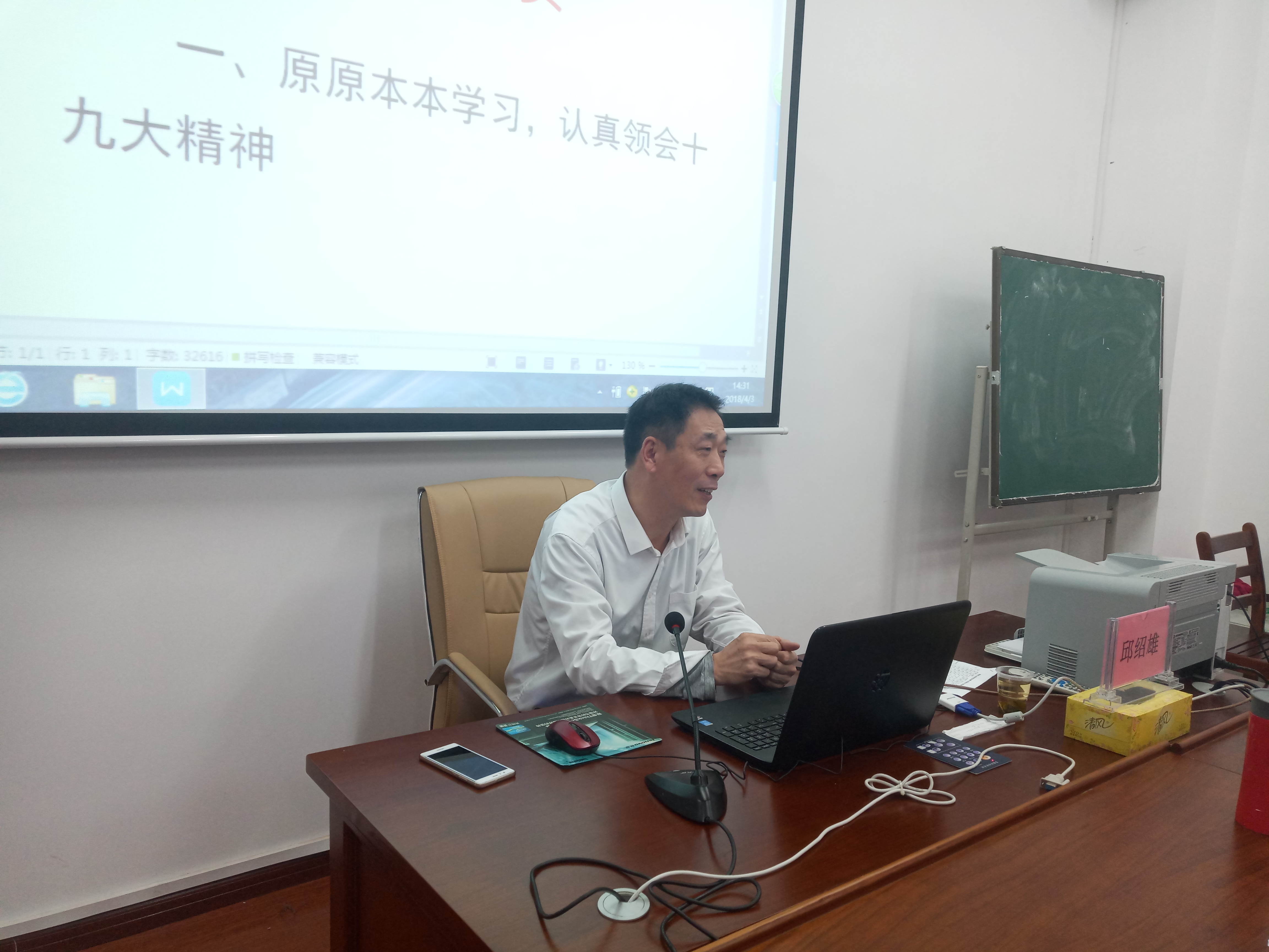 4月3日下午14时30分,政beats365第38期分党校培训班正式开课,公司党委副书记邱绍雄应邀为入党积极分子主讲第一堂党课。公司党总支书记阳鲁平、副书记石蕙、辅导员杨宗圆出席并聆听。