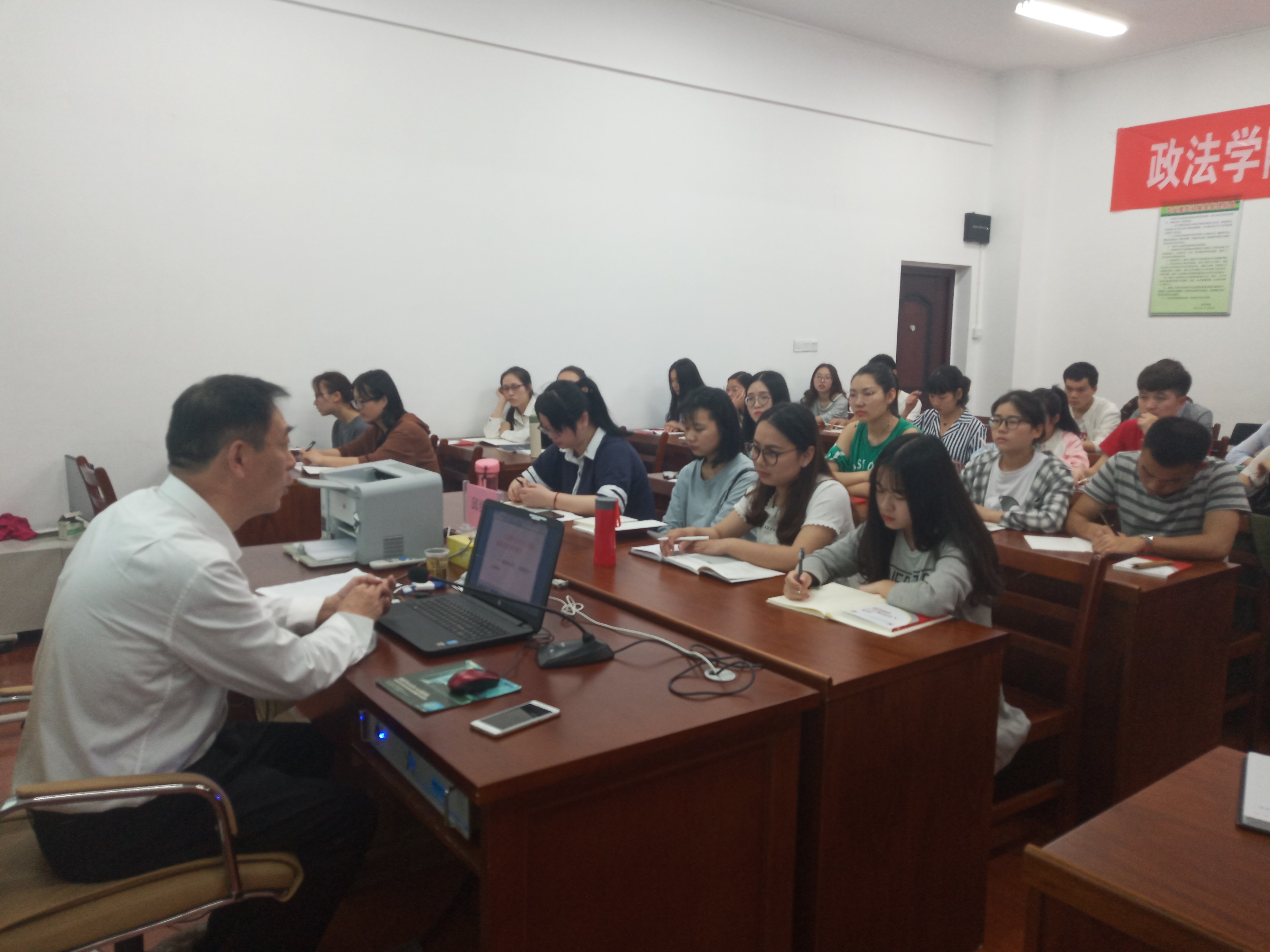 邱绍雄副书记以《与新时代共奋进》为题,详细解读了党的十九大概况、新时代中国特色社会主义思想的丰富内涵、过去五年的历史性成就、我国社会主要矛盾变化的深远影响、“新时代”的基本界定以及“两个一百年”奋斗目标的发展战略等系列内容,并结合政法学子关注的热点问题,分析了党的十九大报告中有关法律制度建设完善、当前中美经济关系的处理等现实问题。他鼓励大家要与新时代共奋进,坚定理想信念,志存高远,脚踏实地,勇做时代的弄潮儿。