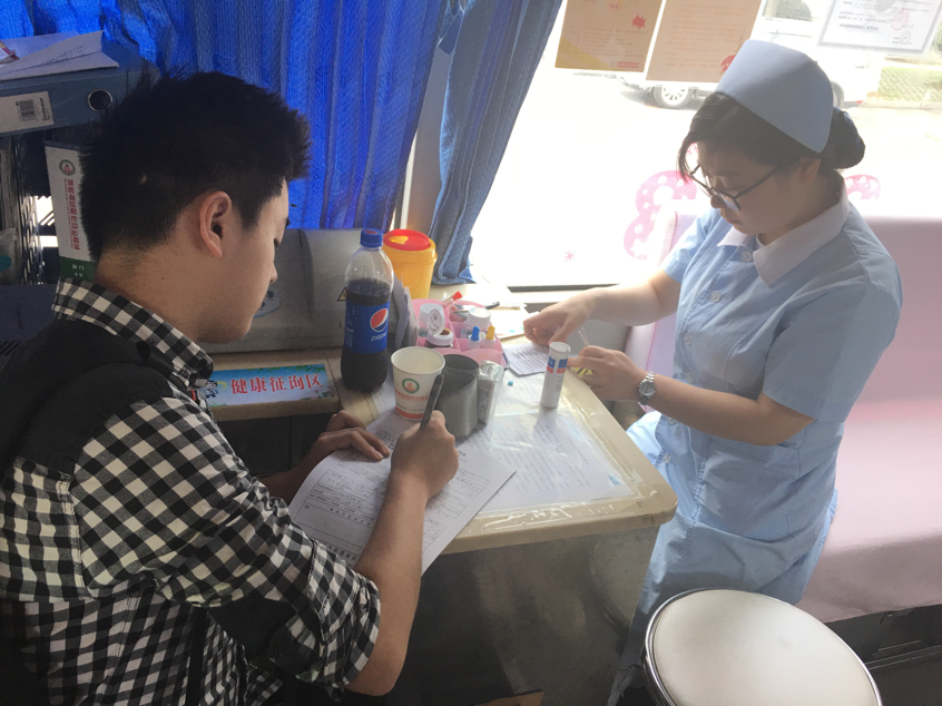 献血活动刚开始不久,就有不少同学相继来到献血车上,有序的领取登记表并填写相关信息。岳阳市中心血站的医护人员像拉家常一样亲切地与同学们进行交流,缓解他们的紧张情绪,并认真了解同学近期身体状况,仔细查验血液各项指标。献血后,血站中心的工作人员为献血的同学们发放了“光荣志愿献血证”,并送上节日祝福,整个活动秩序井然,温馨而感人。