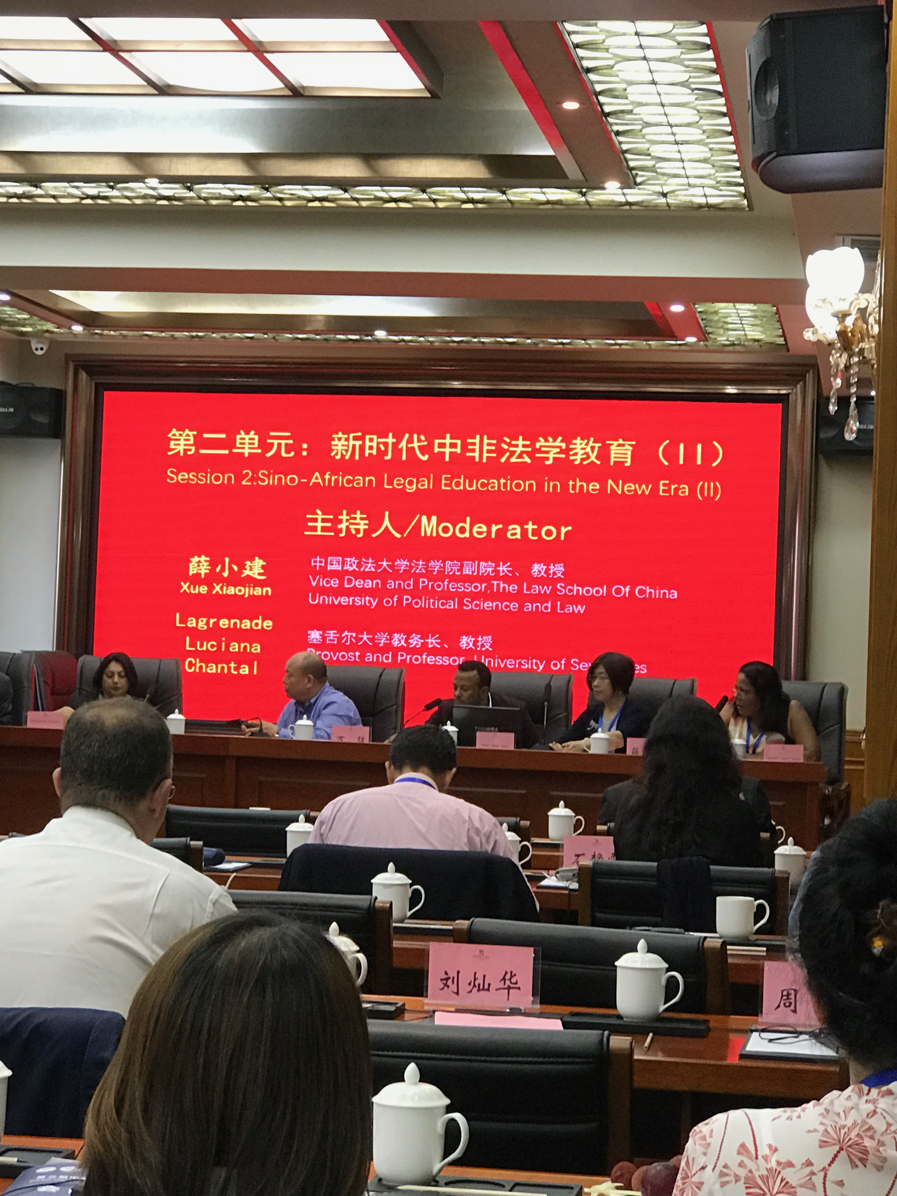 开幕式后,与会嘉宾分别就“新时代中非法学教育”、“新时代中非法律服务”两个主题分四个单元进行主题演讲并开展了热烈的讨论。