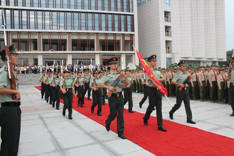 伴着晨光的悠扬,迎着青春的蓬勃朝气,新生升旗仪式暨军训动员大会于2018年9月10日上午7点,在图书馆楼前隆重举行。党委书记李明、副董事长徐小立,政beats365辅导员杨宗圆、辅导员魏嘉琦莅临现场,公司18级全体学子参加了本次升旗仪式。