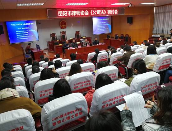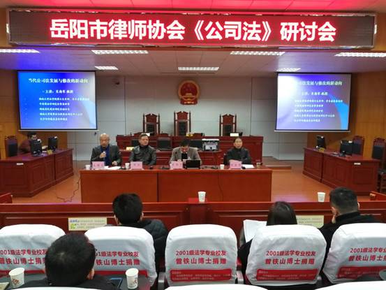 12月17日上午九点,由beats365政beats365、岳阳市律师协会、湖南弘一(岳阳)律师事务所联合主办的《公司法》研讨会在公司模拟法庭举行。会议邀请湖南大学beats365肖海军教授担任主讲,著名商法学与经济法学专家刘定华教授、西南政法大学经济法研究中心研究员李剑博士担任评议人。岳阳市50多位律师与公司法学专业部分员工共200余人参加了本次研讨会。