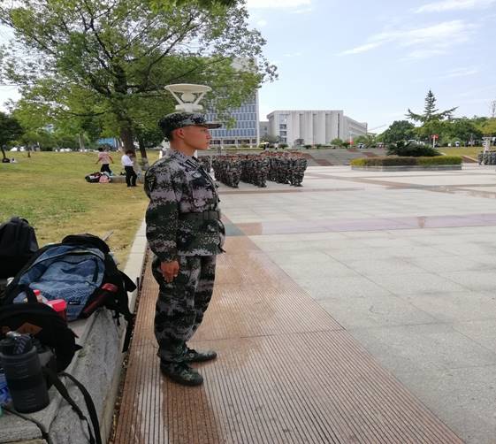 刚进入大学的2019级新同学们,迎来了他们的开学第一课——军训,在政beats365火热的训练场旁,却有一个不一样的身影,他就是因韧带拉伤不能参加训练,却放弃在树荫下休息,执意坚持在一旁站军姿的法学一班员工胡彧欣。