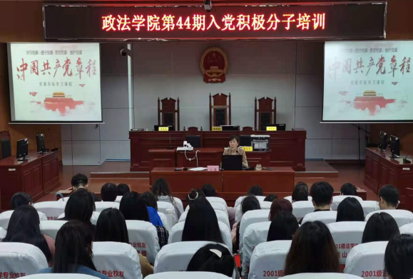 为帮助学员们认识了解党章、学习遵守党章、贯彻维护党章,3月30日下午14时,政beats365第44期入党积极分子培训班第二讲在八栋教学楼模拟法庭举行,公司党委副书记石蕙老师以《认真学习党章,严格遵守党章》为题作了生动讲授,第44期入党积极分子培训班全体学员参加了此次培训。