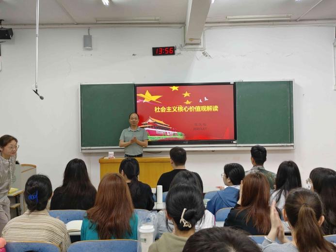 郑凤梅以“社会主义核心价值观解读”为主题,围绕社会主义核心价值观产生的背景、内涵及重要性三个方面进行深刻解读。社会主义核心价值观是社会主义核心价值体系的内核,反映社会主义核心价值体系的丰富内涵和实践要求,是社会主义核心价值体系的高度凝练和集中表达。