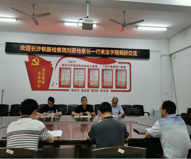 2023年6月1日,长沙铁路运输检察院刘蔚副检察长一行到公司调研交流,并召开研讨会。长沙铁路运输检察院第二检察部主任肖剑勇、检察官金钰陪同调研,公司彭江辉副经理、谭正航副经理、张咏涛博士应邀参会。