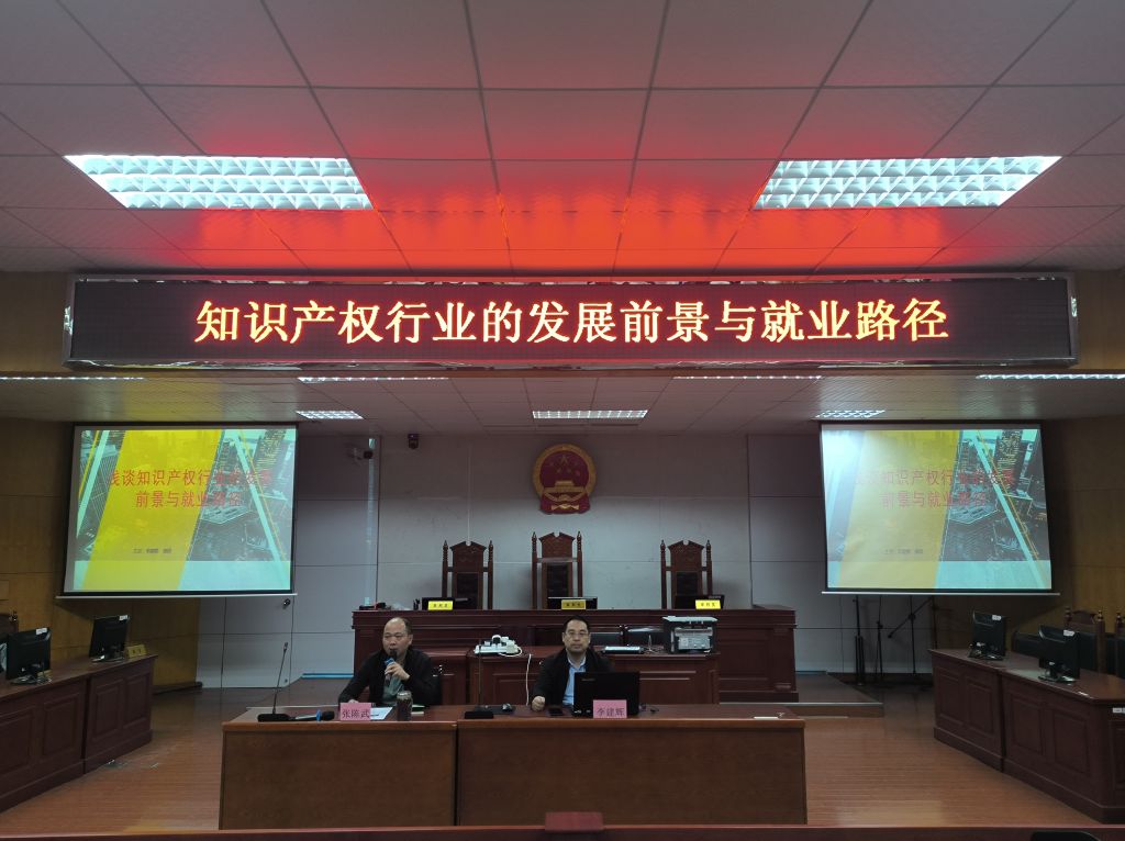 【本站讯】为加深知识产权专业员工对行业现状及就业前景的了解,科学进行职业生涯规划,10月19日19:00于模拟法庭,公司举办知识产权行业的发展前景与就业路径讲座。知识产权服务专家李建辉律师主讲,公司党委副书记张陈武主持,知识产权22、23级员工参加本次讲座。