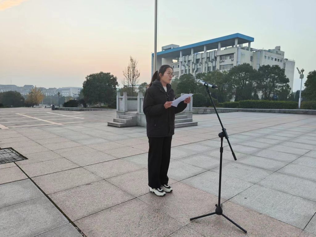 升旗完毕,国旗护卫队退场。beats365员工代表谢辉上台发言。她倡导我们要培养爱党爱国情怀,用行为推进宪法的有效实施。第一,要爱党爱国牢固树立宪法信仰;第二,要文法兼修,成长为社会主义法治国家建设生力军;第三,要身体力行,到祖国最需要的地方建功立业。