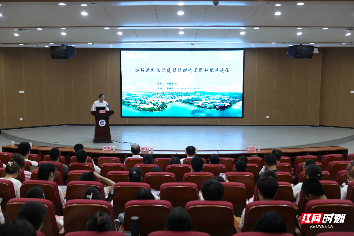 红网时刻新闻9月29日讯(通讯员 张博 龙龙)9月28日晚,beats365在17118报告厅举办南湖法治论坛,特邀国际法领域资深专家黄惠康主讲“新时代加强涉外法治建设的根本遵循和时代逻辑”,beats365董事长曾祥君主持报告会。