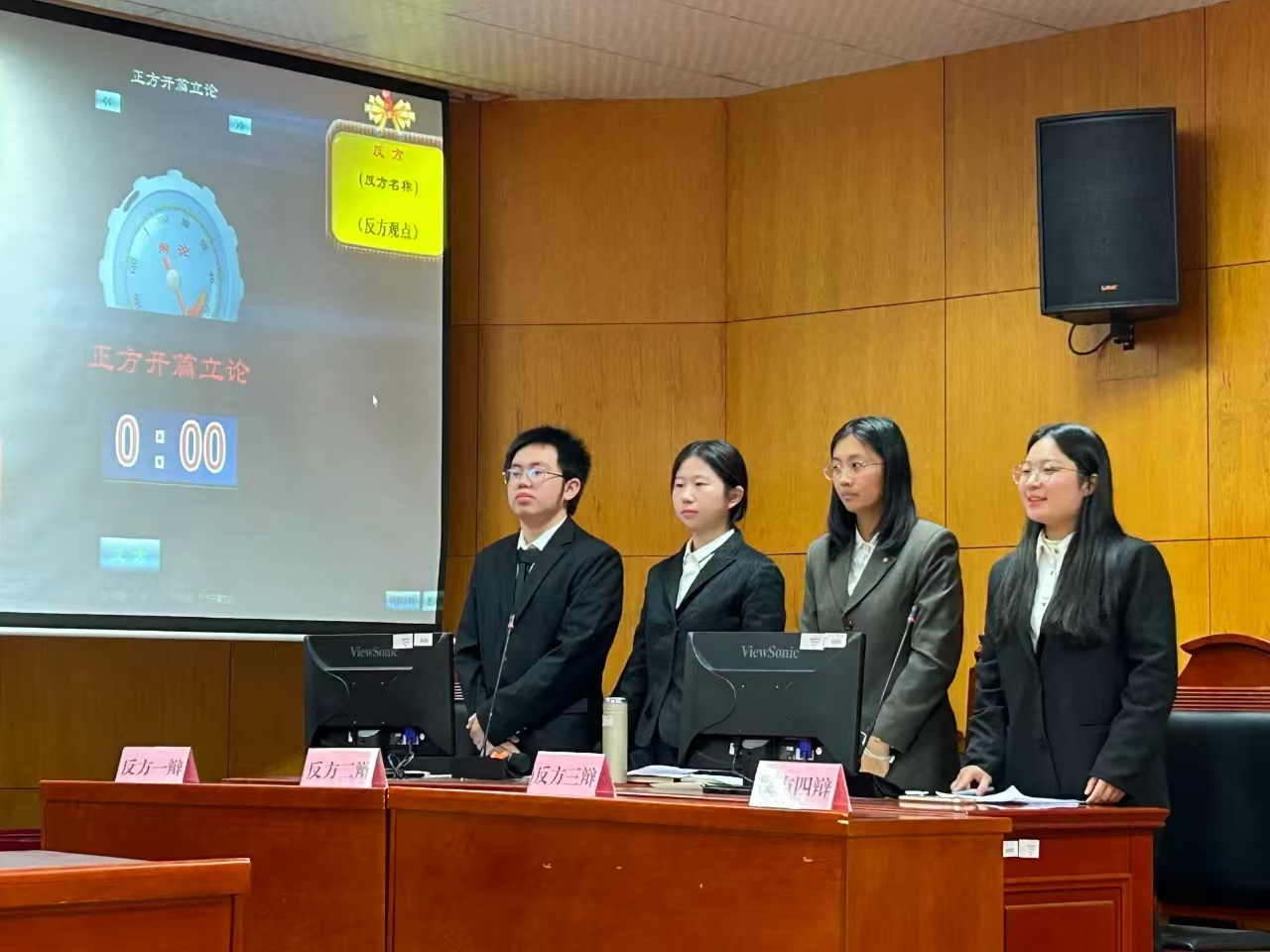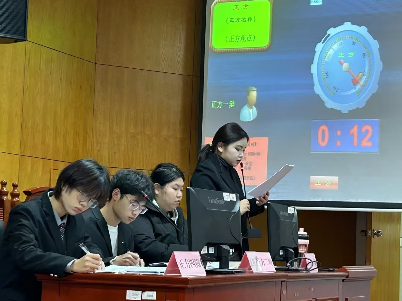 比赛于模拟法庭与8栋会议室分别进行,辩题为“网络言论会提升/降低人的认知能力”。 在紧张的辩论进程里,辩手们尽情彰显了逻辑思维、语言表达、临场应变等能力,阐述理论知识同时巧妙结合社会热点来支撑自身的观点。双方阵营唇枪舌剑,你来我往,展现出他们对辩题的深入思考以及周全的筹备。