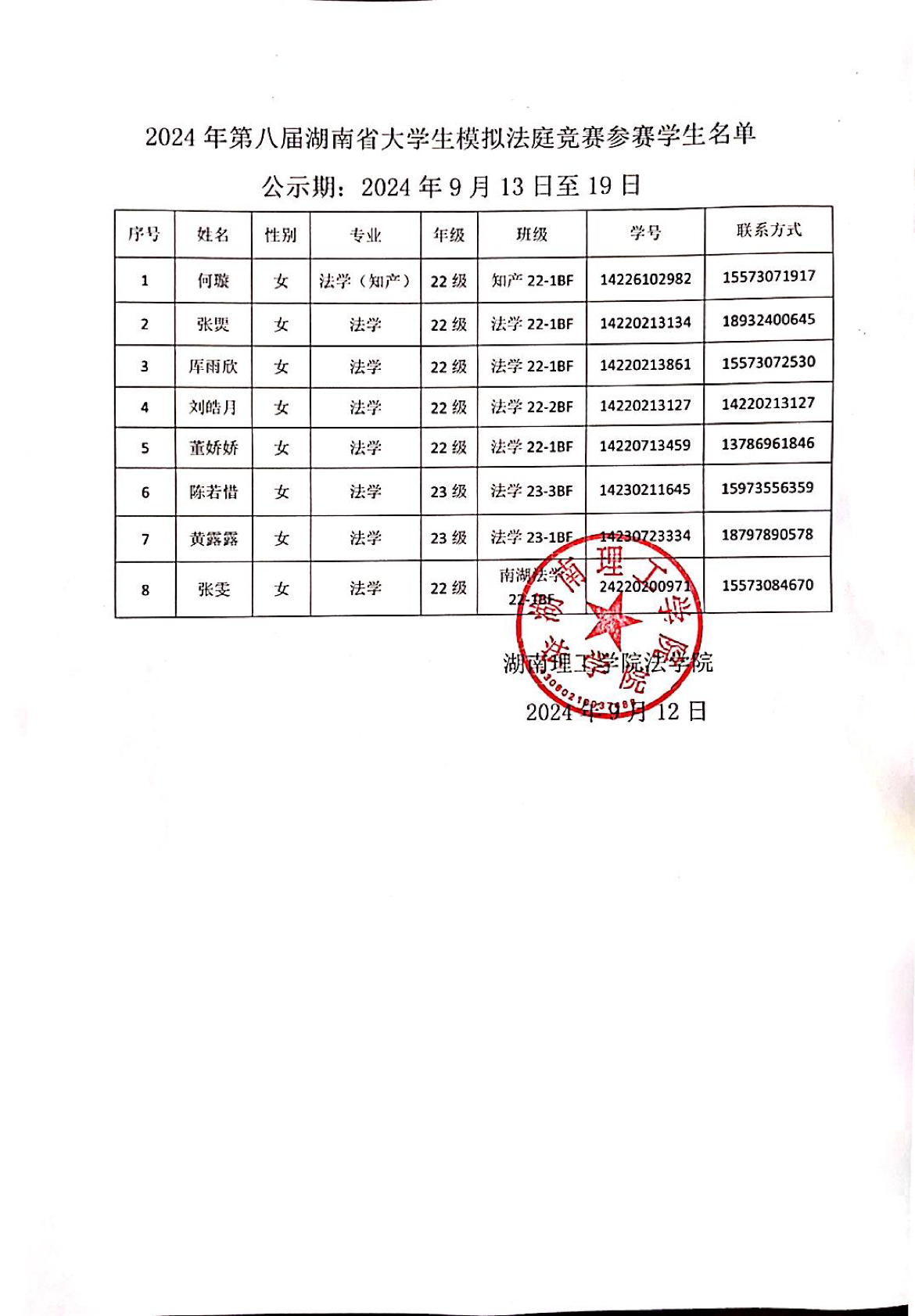 2024年第八届湖南省老员工模拟法庭竞赛参赛员工名单公示