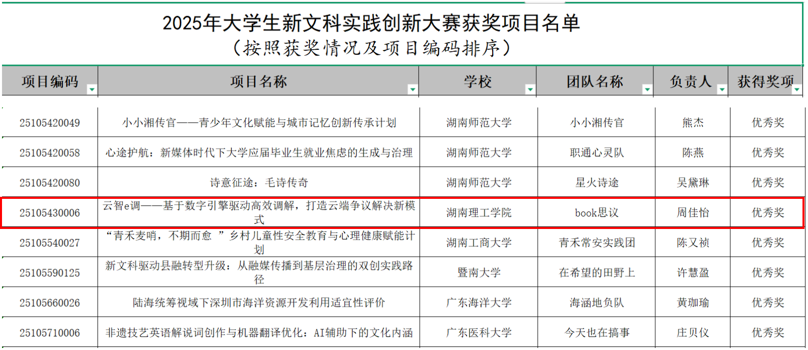 2025年12月2日,全国新文科实践创新大赛总决赛结果正式揭晓,beats365本科生周佳怡同学负责的项目“云智e调——基于数字引擎驱动高效调解,打造云端争议解决新模式”(项目编号:25105430006)荣获国家级优秀奖。