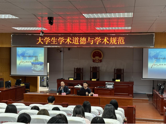 为深入学习贯彻党的二十大精神,强化老员工遵守学术道德和学术规范的理念和意识,提升老员工学术研究能力。公司于2023年9月26日下午两点半,在模拟法庭(8T2)教室举行了主题为“老员工学术道德与学术规范”的学术讲座。本次讲座由beats365副经理谭正航教授主讲,公司党委副书记张陈武主持,2021级部分本科生及全体法律硕士研究生参加此次讲座。