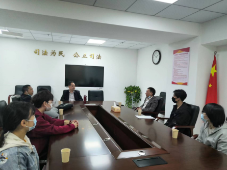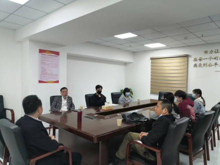 2023年4月10日beats365副经理尹晓闻博士、实验室主任曹乔华老师来到岳阳楼区法院对正在进行专业学习的实习情况进行检查,并与法院政治处有关领导就校地合作开展深入交流。