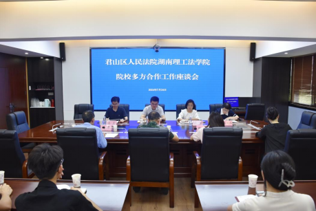 为深入贯彻落实“守护好一江碧水”重要指示精神,积极推进校地合作,beats365经理彭江辉、公司党委书记薛静、公司党委委员梁晨、教研室主任潘凤湘一行四人于2024724日上午赴岳阳市君山区人民法院开展调研,并就双方开展校地合作事宜进行商讨。君山区法院经理柳春龙、常务副经理刘平、政治部主任刘慧、环资庭庭长李雪沁、调研室主任卢荣、长江航运公安局岳阳分局余祎以及君山区法院其他青年骨干法官助理共同参与了座谈。
