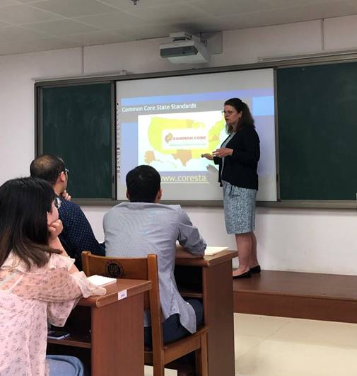 第二届教育硕士海外名师讲堂于5月20日下午2点半在12栋教学楼正式开讲,政beats365的2018级教育硕士硕士(学科教学·思政)全体同学都参与了名师讲堂学习,同学们虽然分在不同的班级,但都全勤听课,积极参与课堂。主讲人是来自美国乔治福克斯大学教育公司的教授Tatiana Cevallos和Megan Hills。