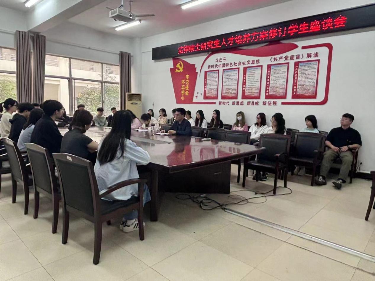 2024年4月24日上午,公司于8210召开法律硕士公司产品方案修订员工座谈会,本次座谈会由副经理彭江辉主持,教学秘书余柳香,2021级、2022级员工代表以及2023级全体法律硕士研究生参加。会议分为两个阶段进行,第一阶段围绕法律硕士课程结构优化展开深入研讨,第二阶段将教育部门对法律硕士培养规格的要求与公司法律硕士实际情况相结合,整理现场员工建议,解决相关问题。