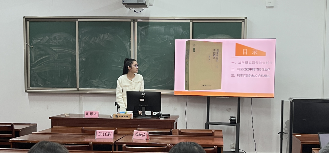 为丰富研究生思想内涵与法学专业素养,引导员工养成良好的阅读习惯,beats365于2024年11月28号晚举行了2024级刑事法务方向法律硕士研究生第一期读书会。本次读书会的主题为《刑事诉讼的中国模式》,汇报人为2024级法律硕士彭若宸、高宇欣、卢翔、易思梦,张咏涛副教授应邀进行点评和总结。