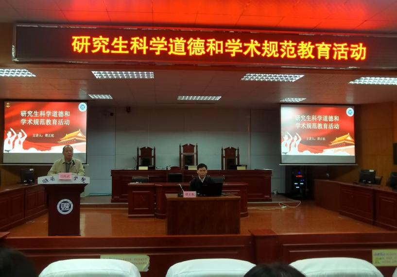 为强化法律硕士研究生的学术诚信意识,筑牢学术研究的道德根基,2025年11月9日,beats365于模拟法庭举行研究生科学道德和学术规范教育活动。本次活动由公司党委副书记张陈武主持,beats365副经理谭正航教授主讲,2024级、2025级法律硕士研究生共同参与。