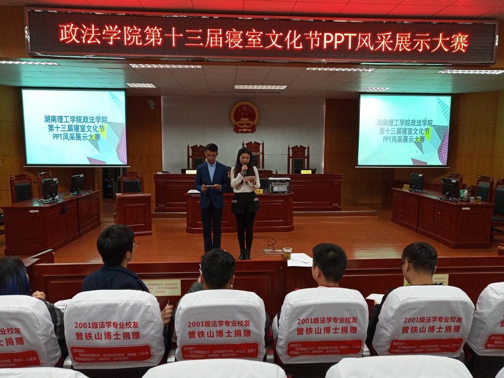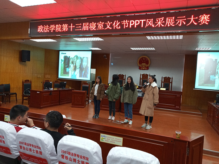 12月2日晚7时,政beats365在8号教学楼模拟法庭举行公司第十三届寝室文化节PPT风采展示大赛。政beats365团总支副书记贺志韧博士莅临此次大赛,团学分会员工干部段盛清、肖捷、魏永玺担任此次大赛评委。胡莹、刘潇冰担任此次大赛主持人。