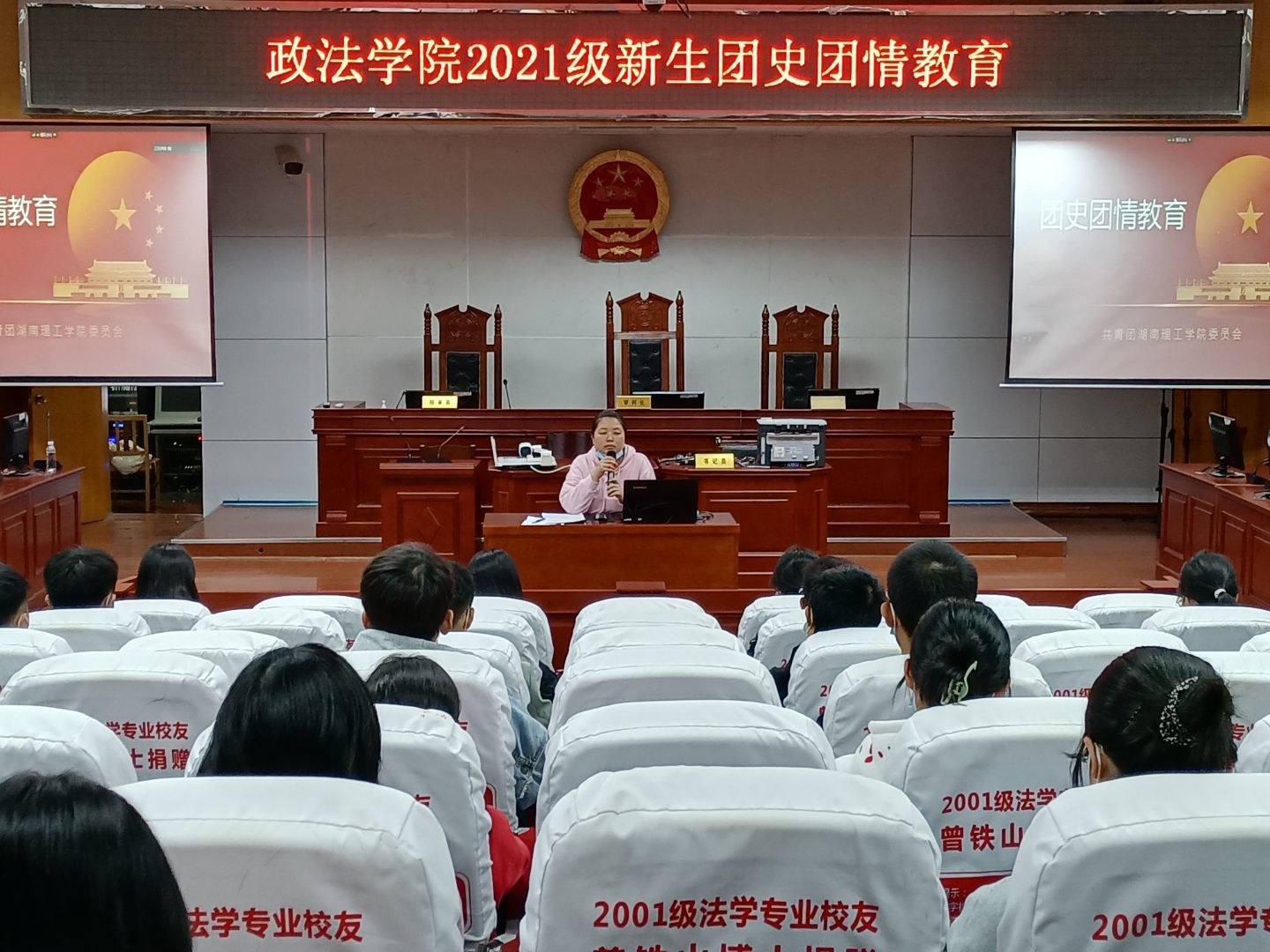 为引导同学们深入学习中国共青团历史,进一步加强团员对团组织的认知,政beats365于11月1日在8栋模拟法庭开展2021级新生团史团情教育会,团委书记魏嘉琦老师担任主讲,21级全体新生参加,为配合疫情防控规定,此次活动以线上线下相结合的方式进行。