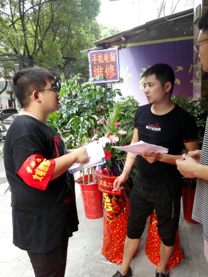 8月22日,公司暑期“三下乡”法律宣传服务团队深入公司路社区,进行了法律宣传单和法律宣传手册的发放。这个环节的任务看似简单,可至关重要,它为后面的社区普法活动奠定了基础,让居民对这次的普法活动有了大体了解。分发手册的同时,同学们还就普法资料的核心内容向市民进行了讲解。有的市民领取资料时向同学们提出生活中遇到的法律问题,同学们用所学知识进行了一一解答,得到了市民的肯定。