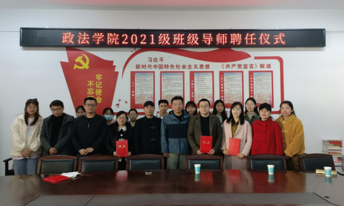 为了落实公司2021级员工班级导师的工作安排,12月21日下午三点,公司在八栋教学楼会议室举行了政2021级导师聘任仪式,仪式结束后,各班召开导师见面会。仪式由政公司党委副书记张陈武主持,出席本次仪式的还有党委书记喻义东、2021级本科生辅导员王旭智、2021级各班班主任以及各班导师夏玲玲、左峻、张娟。参加本次仪式的有2021级各班班长、团支书和学习委员。