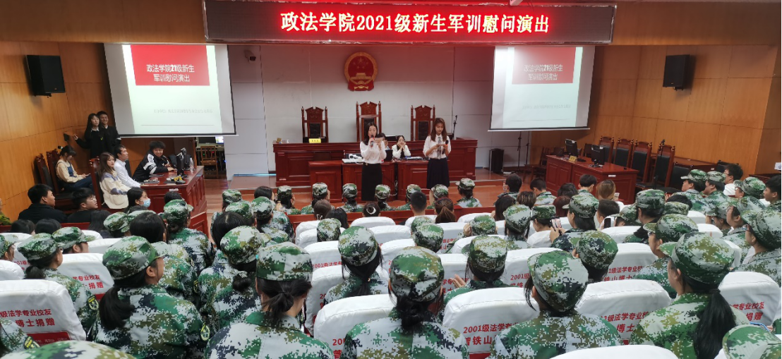 为了丰富21级新生业余活动,增进师生之间的交流,2021年10月11日晚七点政beats365在八栋模拟法庭举办2021级新生军训慰问演出,公司团委副书记宋宏科、军训总教官伍天齐出席了本次演出,全体21级新生参与了此次演出。演出全程气氛活跃,掌声不断。