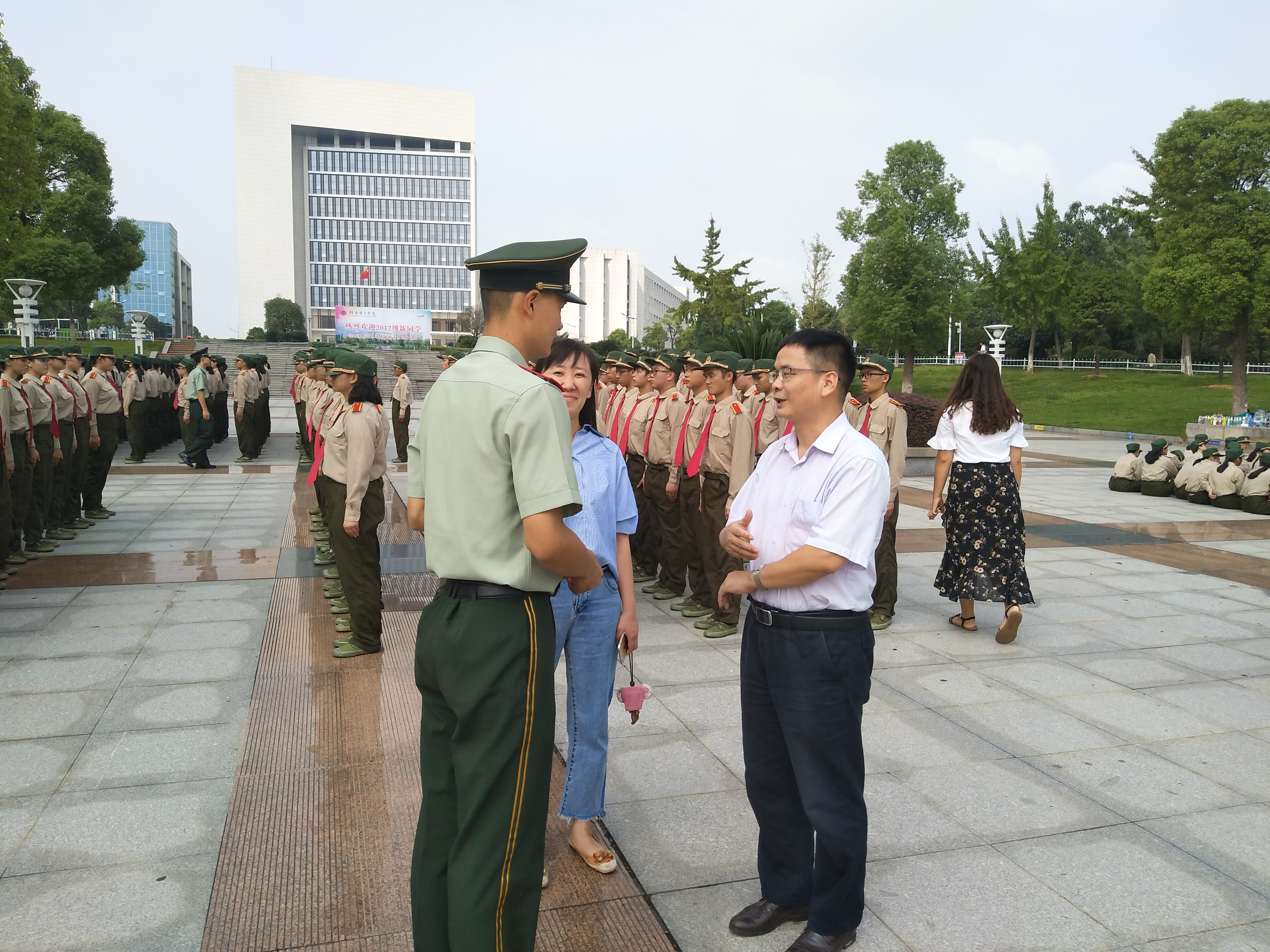 九月理工的气候凉爽宜人,政2017级新生开始了他们的大学第一门课——军训。为了了解新生的军训情况,同时表达对教官的感谢和对新生的关心,9月11日上午,公司党总支书记刘淳松、党总支副书记石蕙,来到军训训练场看望并慰问军训教官及公司2017级全体受训新生。
