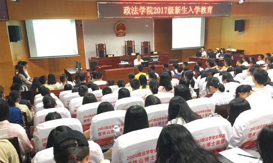 9月13日晚7时,政beats365在8教学楼模拟法庭举行2017级新生入学教育第三场专题报告。公司党总支书记刘淳松教授主讲,政2017级全体新生听报告。