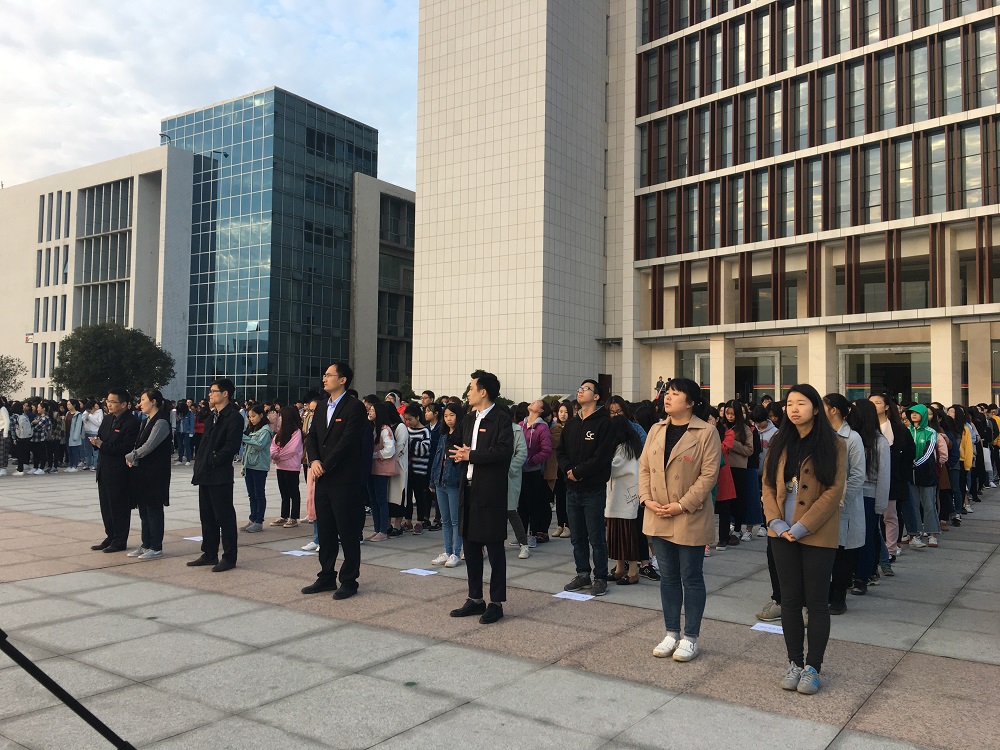 11月6日(星期一),政beats365在图书馆前举行庄严隆重的升国旗仪式。公司及学工部领导老师刘淳松、石蕙、李凯、孟磊、杨宗圆、魏嘉琦、王旭智与公司全体同学一起参加此次升旗仪式。