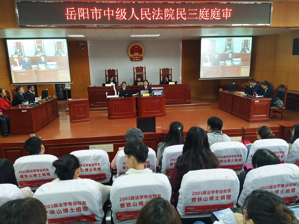 2017年11月13日上午,岳阳市中级人民法院民三庭在公司模拟法庭开庭,公开审理余某、喻某、彭某与中国平安财产保险股份有限公司岳阳中心支公司(简称平安财险)机动车交通事故责任纠纷(上诉)一案。公司法学专业部分师生和南湖公司法学专业部分员工踊跃参与了旁听,旁听区座无虚席。