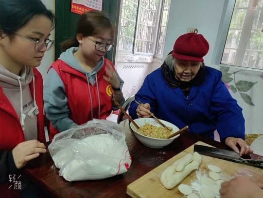 秋雨绵绵,凉风习习,在公司路社区工作人员的安排下,“星火”志愿服务团队分成五组深入不同空巢老人家中实施关爱服务。与志愿者2018级思政专业员工吴昊楠小组结对的是社区高龄老人唐顺英,吴昊楠小组与唐顺英老人的结队认养是从今年3月开始的,每个周末小组的志愿者们都会前往唐顺英老人家中探望,扶老人下楼晒太阳,陪老人散步聊天,帮老人清扫房屋、包饺子,遇上节庆,志愿者们还会精心准备一些水果、点心送到老人家中。近一年的相处,唐顺英老人把这群老员工志愿者视为家人一般,每回看到志愿者们的到来,唐顺英老人都特别欢喜,接着孩子们的手嘘寒问暖,每回看到志愿者离去时,唐顺英老人都坚持要拖着年迈的身体把志愿者们送到门口,直到看到志愿者们的身影消失才肯离去。这次听说唐顺英老人因病住院了,志愿者们火速搭乘公交车前往医院探望。唐顺英老人看到志愿者们的到来,既惊讶,又高兴。病床前,志愿们轻轻地抚摸着老人受伤的手臂,小声地陪老人聊天,小小的病房内弥漫着温暖的情谊。志愿者2018级法学专业高倩小组结对的是社区的盛爱兰老人,盛爱兰老人见到志愿者们的到来,十分欢迎,引志愿者们进屋后便忙着削苹果和问候,志愿者们也帮着老人清洁房屋卫生,整理房屋设备,陪着老人聊家常,离开时,志愿者们留下了联系电话,叮嘱盛爱兰老人在生活中如有志愿者可以做到的可以随时拨打电话联络。老员工志愿者们用行动诠释着志愿服务精神,用真诚打动着老人,陪伴空巢、失独、困难老人们度过愉快的晚年生活。