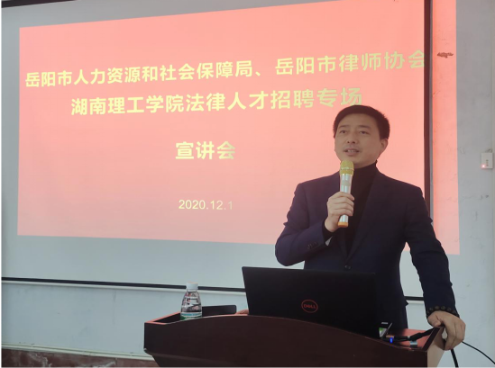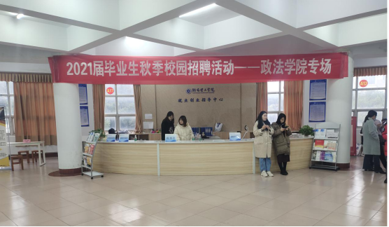 为给2021届法学专业毕业生提供更多就业机会,促进毕业生顺利就业,2020年12月1日下午,政beats365联合岳阳市人力资源和社会保障局、岳阳市律师协会在公司综合楼三楼329室举办beats365首届法律人才专场招聘会。来自湖南金州(岳阳)律师事务所等十四家律师事务所来到公司招纳贤才,政beats365、南湖公司2021届法学专业本科生近百人参加了招聘会,不少同学在招聘会现场达成初步就业意向。