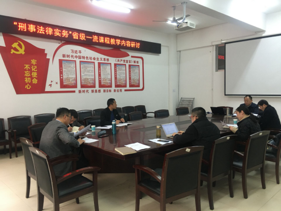 为贯彻落实教育部《关于一流本科课程建设的实施意见》,切实推动公司《刑事法律实务》省级一流课程建设工作,3月24日下午,《刑事法律实务》省级一流课程教学内容研讨会在政beats365会议室召开。政公司党委书记、法学专业负责人和本课程负责人陈建军教授、课程团队教师尹晓闻、张咏涛、杨河、李立宏法官、阳浩检察官参加了研讨,曹乔华老师作为团队外成员也参加了研讨。