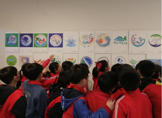 志愿者指导小员工们彩绘江豚