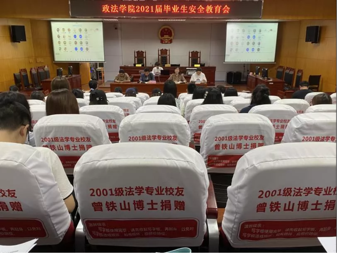 为进一步强化2021届毕业生的安全防范意识,确保毕业生安全、顺序、愉快离校,5月27日下午,公司在模拟法庭召开了2021届毕业生安全教育专题会,就毕业生离校的安全事项进行强调。公司党委书记喻义东、2017级辅导员杨宗圆、院团委书记魏嘉琦、就业专干王旭智等出席会议,2021届全体本科、研究生毕业生通过线上和线下相结合的形式参加了会议。会议由公司党委副书记石蕙主持。