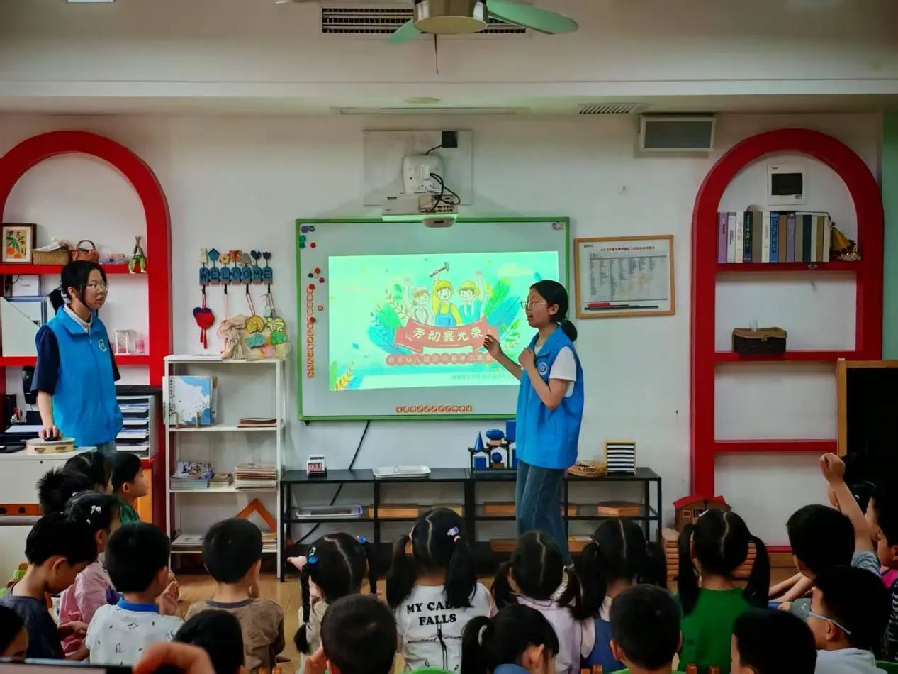 活动伊始,志愿者们以一段精彩的动画视频开启了“劳动节的由来”篇章。1886年芝加哥工人为争取八小时工作制而进行的罢工运动,在志愿者绘声绘色的讲述中,鲜活地呈现在孩子们眼前,让孩子们明白如今的假期来之不易。随后,在“辛勤的劳动者们”环节,当一幅幅环卫工人清扫街道、医护人员救治病人、农民辛勤劳作、建筑工人建造高楼的图片展示出来时,那些平日里或许被忽略的身影,在此刻定格成最动人的画面,也孩子们的心中悄悄种下了对劳动者的敬意种子。“学会尊重他人劳动成果”实践环节,孩子们围坐在一起,认真观察教室的每一个角落,讨论着老师、保洁阿姨为保持整洁付出的劳动。“争做生活小能手”互动更把活动推向高潮,孩子们跟着《自理拍手歌》的欢快节奏,一边哼唱一边做起简单的劳动动作。互动问答环节,孩子们积极踊跃地举手,在一问一答间,理解了不同职业劳动者的辛勤付出。