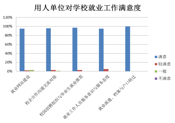 5.大部分用人单位对公司的毕业生工作比较满意,特别是就业工作人员的服务意识与服务态度,校方在就业派遣、档案与户口转移等工作完成的比较及时,用人单位希望校方与之加强合作沟通交流的对接,这样能够实现双方的有益发展。