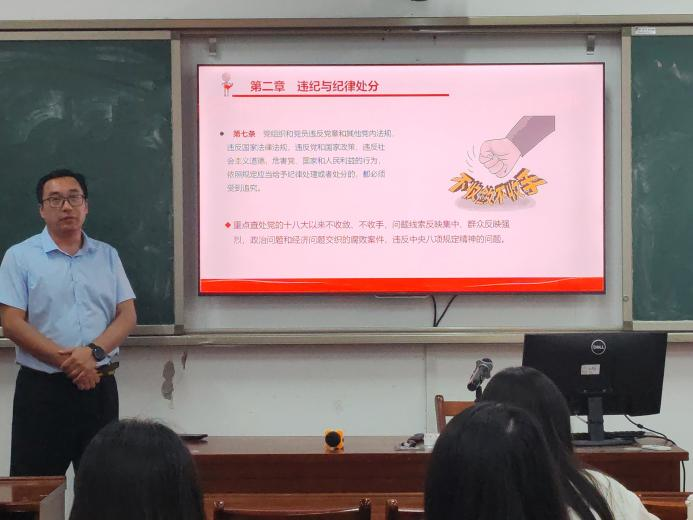 张咏涛结合近年的典型案例,从政治纪律、组织纪律、廉洁纪律、群众纪律、工作纪律、生活纪律“六大纪律”方面,详细解读《中国共产党纪律处分条例》。他提出,全体学员应该深刻领会修订《条例》的重要意义,全面准确理解《条例》的丰富内涵,要通过学习《条例》,知道党的纪律规矩是什么,能干什么、不能干什么。