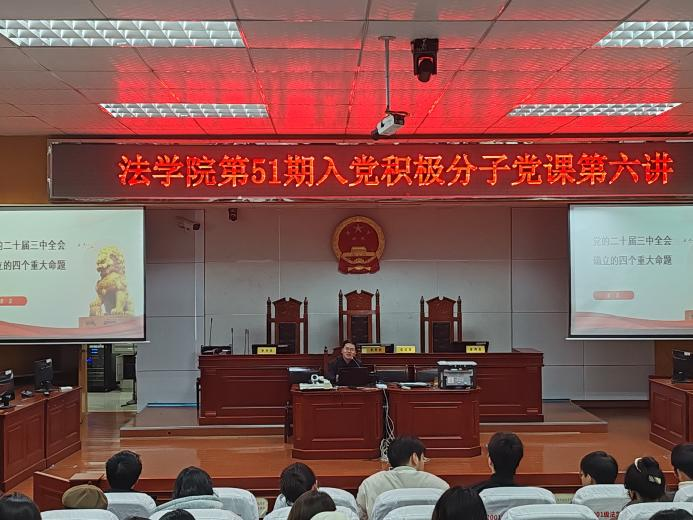 习近平总书记强调:“只有全体人民信仰法治、厉行法治,国家和社会生活才能真正实现在法治轨道上运行”。beats365的入党积极分子更应该要做尊法学法守法用法的模范。通过本次党课,同学们深刻认识到要贯彻落实党的二十届三中全会《决定》精神,激发践行法治的热情与责任感,提升自身法治观念和法治素养,为法治中国贡献自己的力量。(撰稿:黎婉琪;一审:何铁勇;二审:张陈武;三审:薛静)