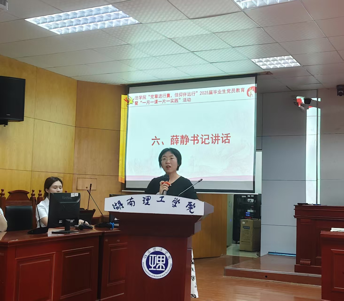 最后,薛静代表公司党委讲话。她表示,在校期间,毕业生党员坚定不移听党话、跟党走,争做新时代好青年,光荣加入了中国共产党,这是党组织的充分肯定,也一份沉甸甸的责任与使命。她强调,毕业生党员们不管身在何处,身兼何职,要牢记党员身份,要以“至善穷理”的校训精神彰显不同凡响党员风采、湖理力量。与会人员纷纷表示,一定会铭记老师们的谆谆教诲,一如既往地以党员的标准严格要求自己,积极投身法治事业,为党旗争辉,为母校添彩。